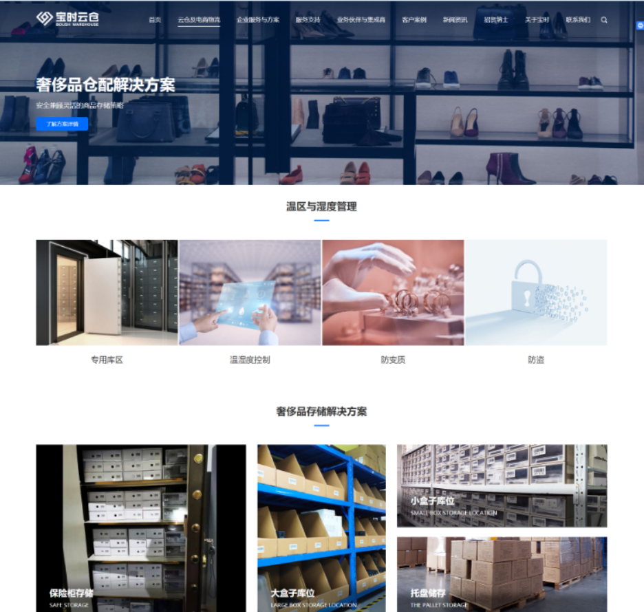新版網(wǎng)站優(yōu)化了欄目設置和頁面設計,采用形象的2.5D插畫、短視頻、扁平化、JS特效等方式來提升頁面視覺效果與交互體驗,進一步展示了寶時云倉堅持創(chuàng)新,引領行業(yè)發(fā)展的良好企業(yè)形象。