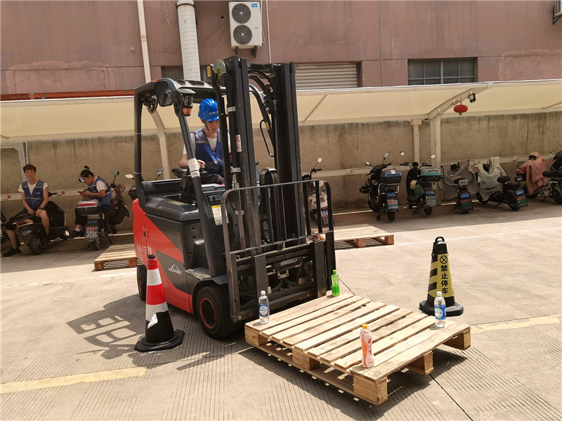 “節(jié)節(jié)高(精準(zhǔn)堆垛)”項(xiàng)目則對(duì)叉車司機(jī)的準(zhǔn)確性和平衡感提出了更高的要求。每塊托盤四角各放置1瓶可樂(lè)作為支撐,選手們需要將6個(gè)塊托盤一層層地堆疊起來(lái),確保穩(wěn)定和精準(zhǔn)。這不僅考驗(yàn)了他們的駕駛技巧,更需要他們對(duì)貨物的特性有深刻的了解和掌握。